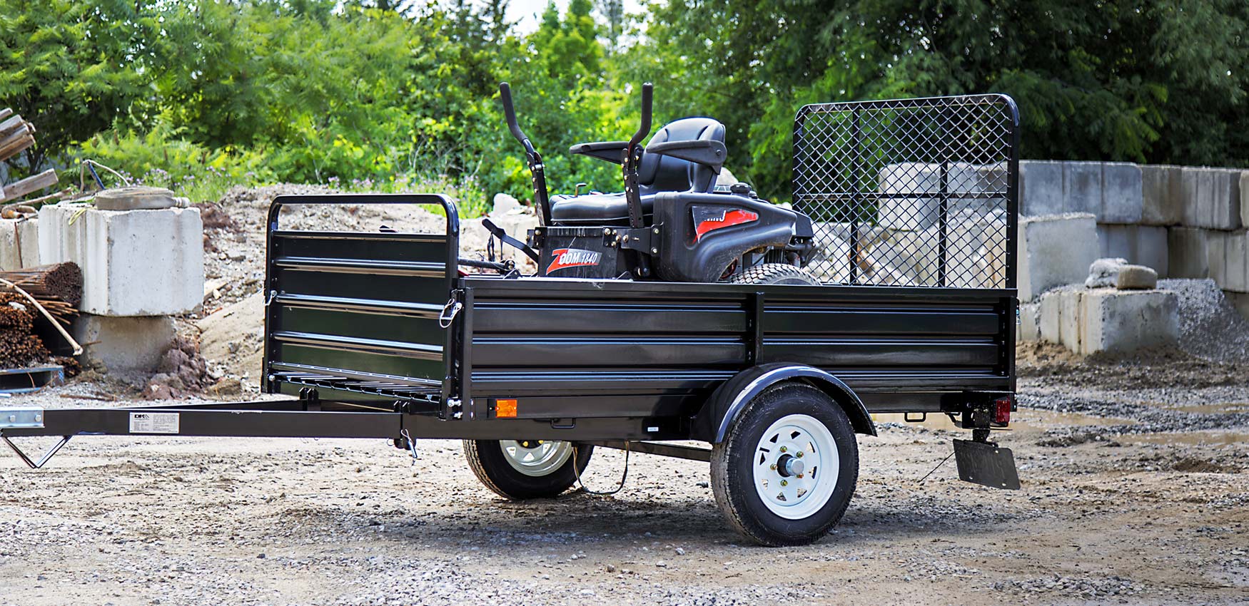 The DK2 MMT5X7G with DRIVE UP GATE is a single axle multi-utility galvanized trailer and one of the most versatile trailers on the market. Sitting on a solid square tube cambered axle with 12 in. radial tires, and a load capacity of 1,639lb.