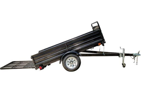 When the front and back load-bearing gates are down, the trailer bed extends to nearly 11.58 ft. Another great feature is the tilt/dump capability that makes it easy to load or unload heavy items.