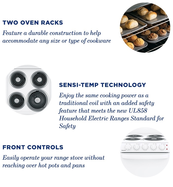 - Sensi-temp technology - Enjoy the same cooking power as a traditional coil with an added safety feature that meets the new UL858 Household Electric Ranges Standard for Safety